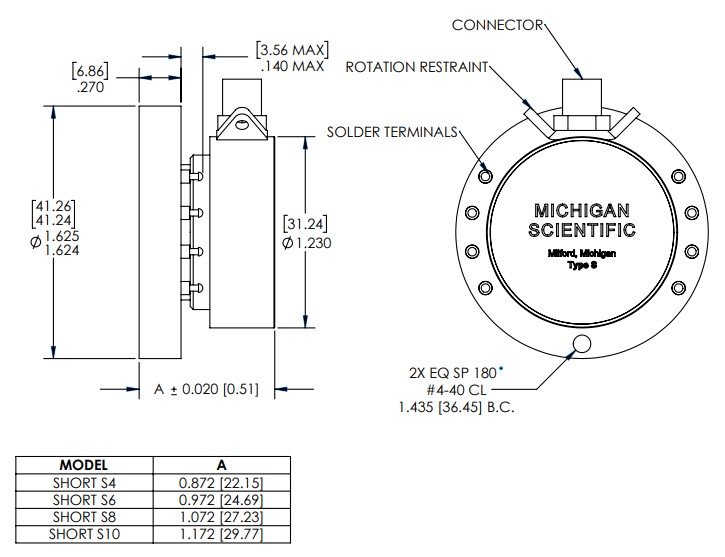 Les collecteurs tournant de la série SHORT S (SHORT S4, SHORT S6, SHORT S8, SHORT S10) se montent au moyen de 2 vis directement ou via une bride dans le prolongement de l'arbre. Les fils des capteurs sont au choix acheminés à la surface ou au creux de l'arbre. Dans le second cas, un orifice de sortie sera à prévoir pour souder les fils au rotor du collecteur tournant.